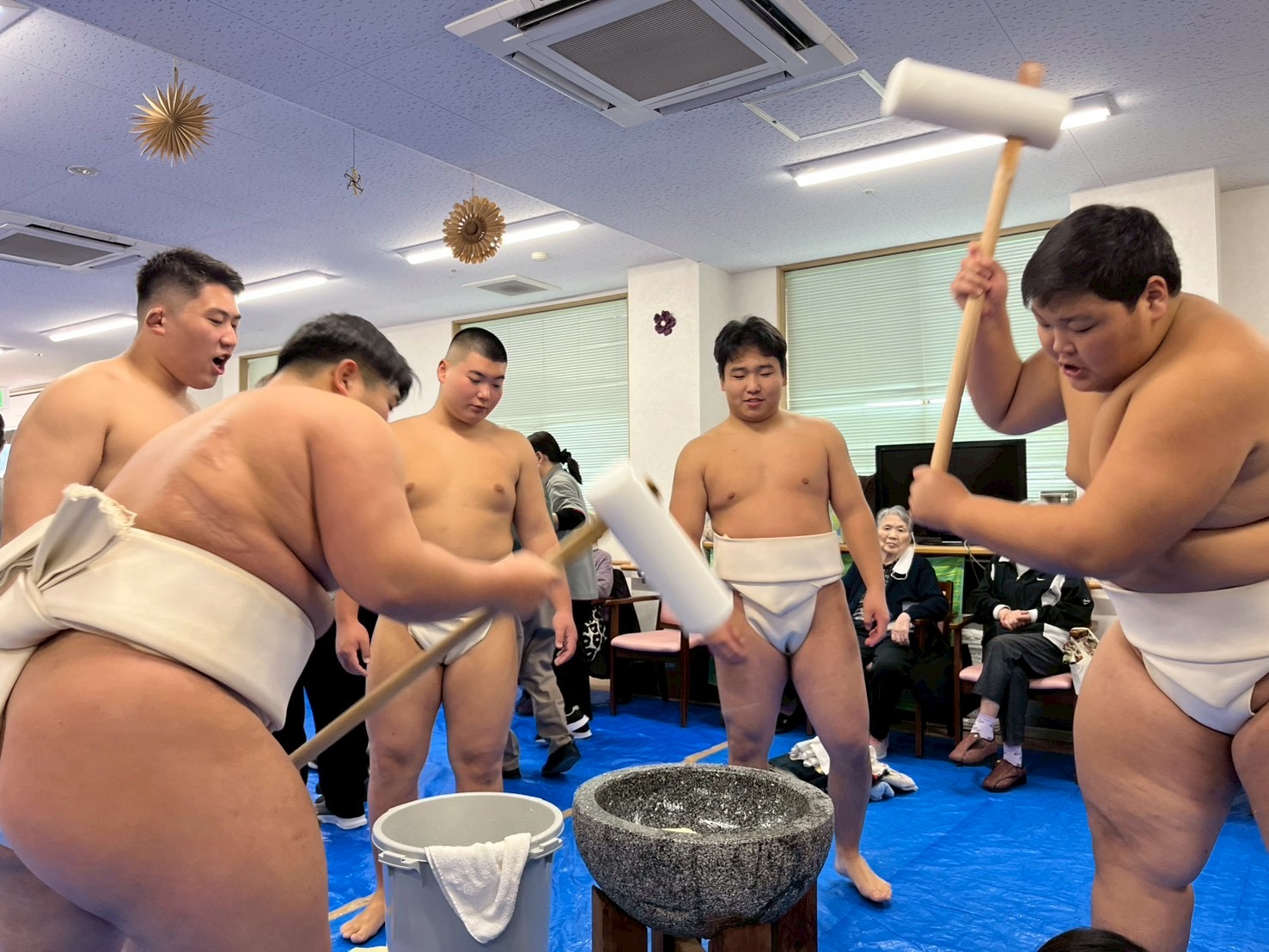 毎年恒例となっている相撲部の地域交流活動として、「コピーヌなかま(老人ホーム・デイサービス)」を訪問し、餅つき大会に参加しました。 当日は、利用者様一人ひとりと部員が一緒に餅つきを行い、元気な掛け声と笑顔で会場を大いに盛り上げました。 また、利用者様からは生徒たちへ温かい応援の言葉をいただき、生徒にとっても心に残る貴重な交流の時間となりました。
